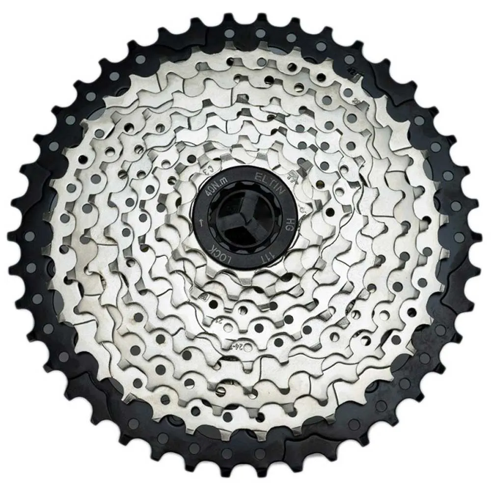 The Eltin 10-speed drilled bicycle cassette has the perfect balance of durability, lightness, and performance, providing smooth shifting without any chain jumping. Nickel finish for strength and uniformity. The 11-40 tooth and 11-42 tooth combinations will be your best allies when it comes to riding your bike smoothly over hilly terrain.
